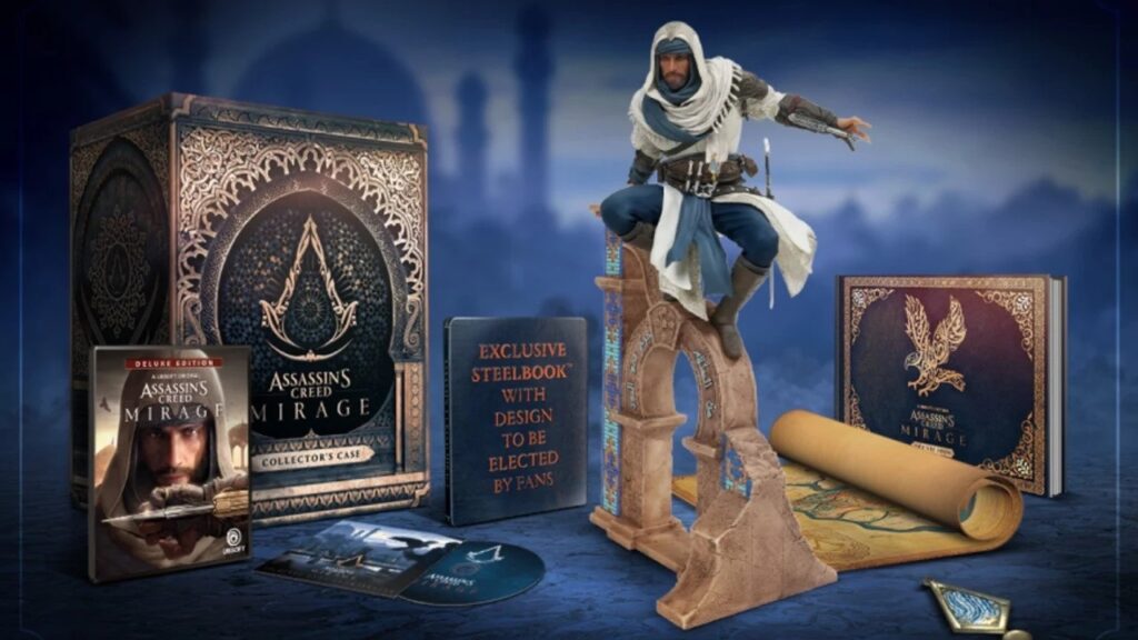 Mirage si můžeš pořídit ve třech variantách. Základní verze obsahuje pouze hru samotnou, v Deluxe Edition je obsažen navíc deluxe pack, který zahrnuje skin inspirovaný sérií Prince of Persia, a doplňuje ho digitální artbook a soundtrack. Pokud jsi sběratel, je pak pro tebe určena krásná tzv. Collector's Case, v jehož nitru se ukrývá obsah předchozí edice a navíc steelbook, fyzický soundtrack, mini artbook, brož, mapa Bagdádu a především 32 cm vysoká soška Basima. To vše zabalené ve stylové krabici.
