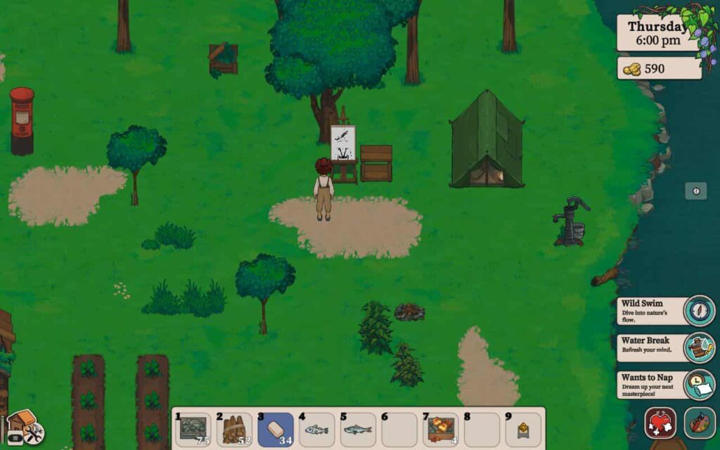 Hra navíc nabízí spoustu volných chvilek. Můžeš jít na ryby, posedět u ohně, malovat nebo si jen povídat s ostatními. Je to hra, kterou si spíš vychutnáváš než „hraješ“. Tempo je záměrně pomalejší, což mi osobně sedlo. Připomíná to venkovský víkend – pustíš si rádio, projdeš se mezi stromy, poslechneš déšť a zapomeneš, že venku běží svět.